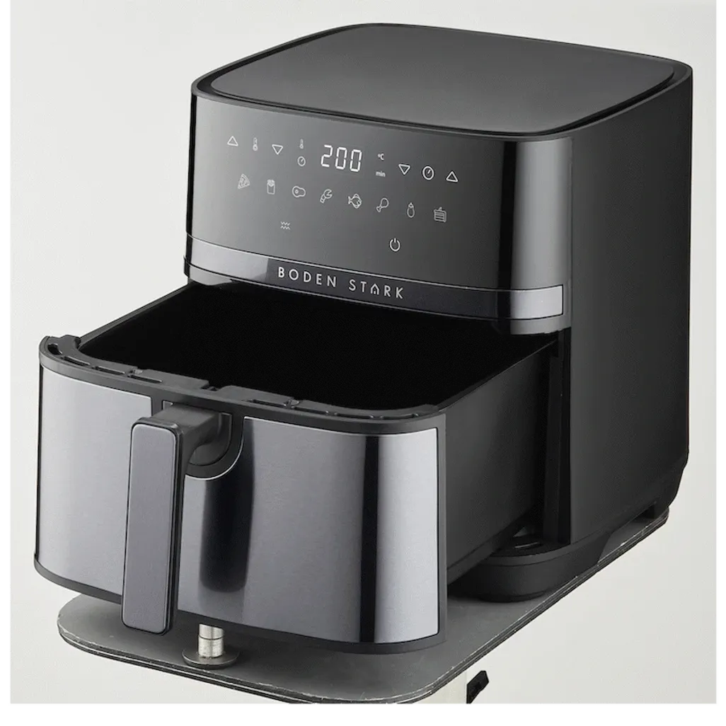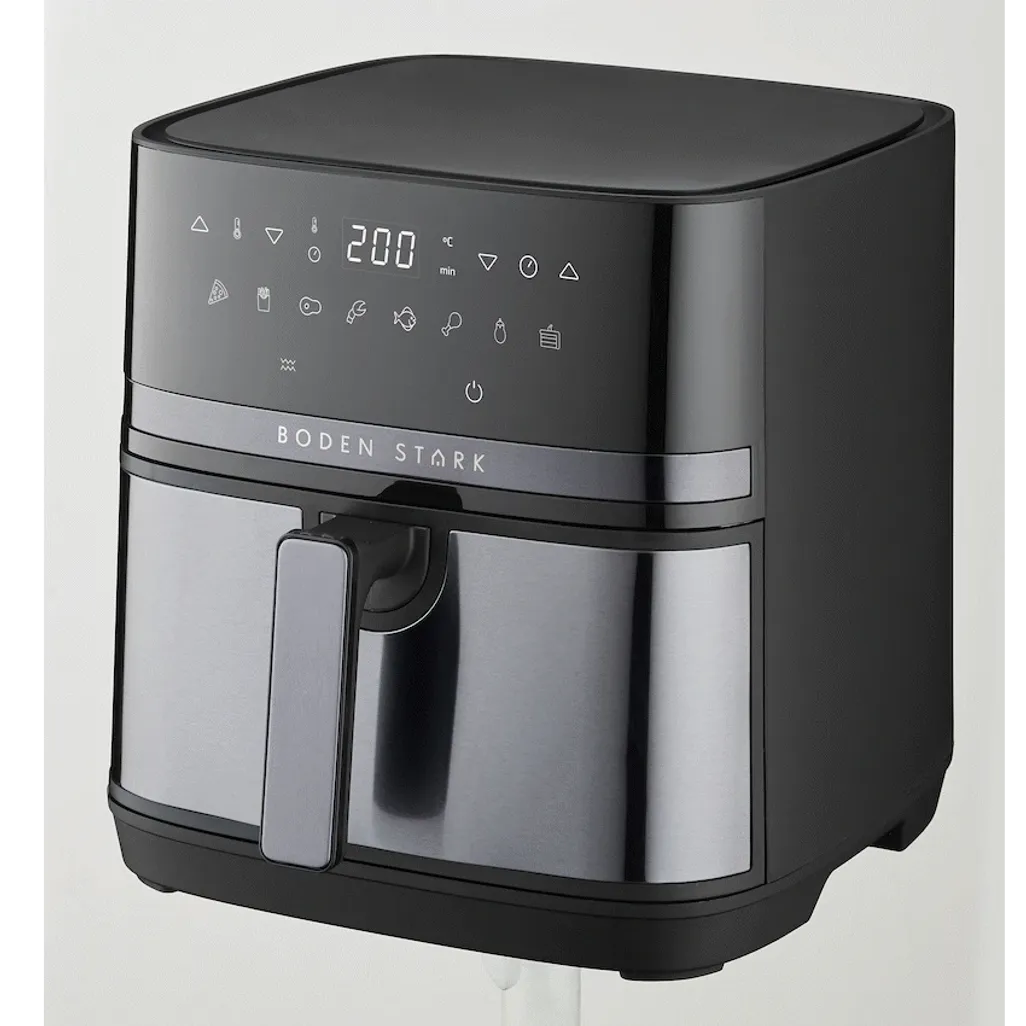 Boden Stark 8.0L Digital Air Fryer – BlackSubtitleCook healthier family meals with a large 8L oil-free digital air fryer.Long DescriptionEnjoy healthier cooking without sacrificing flavour with the Boden Stark 8.0L Digital Air Fryer. Designed for modern South African kitchens, this large capacity air fryer is perfect for families who love crispy, golden meals without the excess oil. With its digital controls and powerful heating system, it makes everyday cooking simple, fast, and healthy.The generous 8-litre capacity allows you to prepare family-sized portions in one go-ideal for chicken, chips, veggies, and even baked treats. Thanks to stereoscopic 3D heating, food is cooked evenly from all sides, giving you consistently delicious results. The adjustable temperature control (80-200degC) makes it easy to cook a wide variety of dishes with precision, while the removable non-stick pot ensures quick and hassle-free cleaning.Built with a sturdy non-slip base and a 2200W power system, this appliance is both safe and efficient. Whether you’re air frying, roasting, or reheating, the Boden Stark Digital Air Fryer is your go-to oil-free cooking appliance for healthier living.Feature HighlightsFamily-Sized 8L Capacity – Cook generous portions perfect for the whole familyEven 3D Heating – Stereoscopic circulation for crispy, evenly cooked foodPrecise Temperature Control – Adjustable from 80-200degC for versatile cookingEasy-Clean Non-Stick Pot – Removable design makes cleaning effortlessStable Non-Slip Design – Keeps your air fryer secure during usePowerful 2200W Heating – Fast preheating and efficient cooking performanceTechnical SpecificationsPower: 2200W (1700W + 500W)Temperature Control: 80-200degCCapacity: 8.0LHeating: Stereoscopic 3D heatingInterior: Metal with non-stick removable potSafety: Non-slip feetWhat’s in the Box1 x Boden Stark 8.0L Digital Air Fryer1 x Instruction ManualMake every meal a healthier delight-crispy, tasty, and oil-free with the Boden Stark 8.0L Digital Air Fryer.